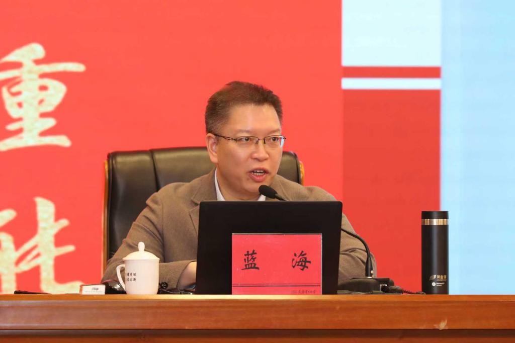 10月29日下午,學(xué)校在圖書館報告廳舉辦《習(xí)近平談治國理政》第五卷專題學(xué)習(xí)輔導(dǎo)報告會,邀請南開大學(xué)馬克思主義學(xué)院副教授藍海作專題輔導(dǎo)報告。校黨委書記、校長練繼建出席報告會。校院兩級黨委理論學(xué)習(xí)中心組成員、全體處級干部、基層黨支部書記代表、馬克思主義學(xué)院思政課教師代表近400人參加會議。