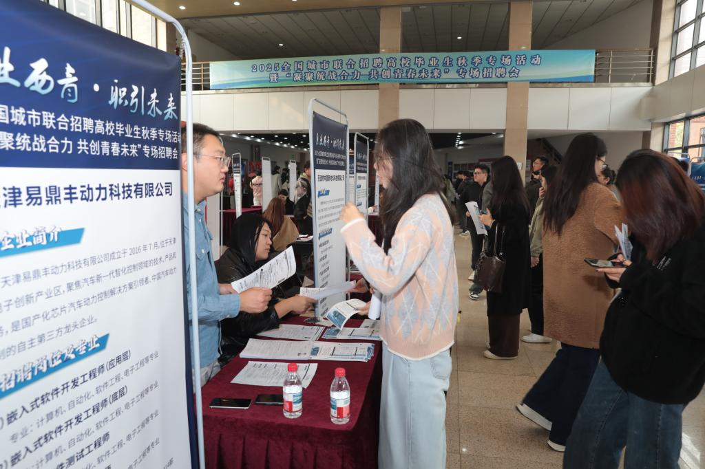 本次招聘會由黨委統戰部、西青區委統戰部牽頭,聯合西青區人社局、黨委學生工作部共同舉辦。共組織天津鐳明激光科技有限公司、中汽(天津)系統工程有限公司等40余家企業參與,提供崗位300余個。400余名應屆畢業生到場求職,向各用人單位積極自我推介,現場洽談求職氣氛熱烈。