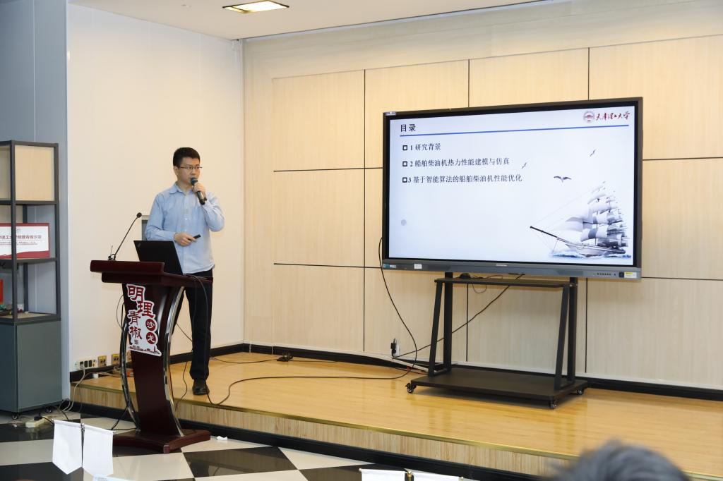 申振宇作題為“船舶柴油機(jī)熱力性能仿真與優(yōu)化”的學(xué)術(shù)報告。該研究以船舶柴油機(jī)工作原理為基礎(chǔ),先通過模塊化建模構(gòu)建出柴油機(jī)熱力性能模型,完成驗證后,采用智能優(yōu)化算法實現(xiàn)船舶柴油機(jī)的單目標(biāo)與多目標(biāo)優(yōu)化。