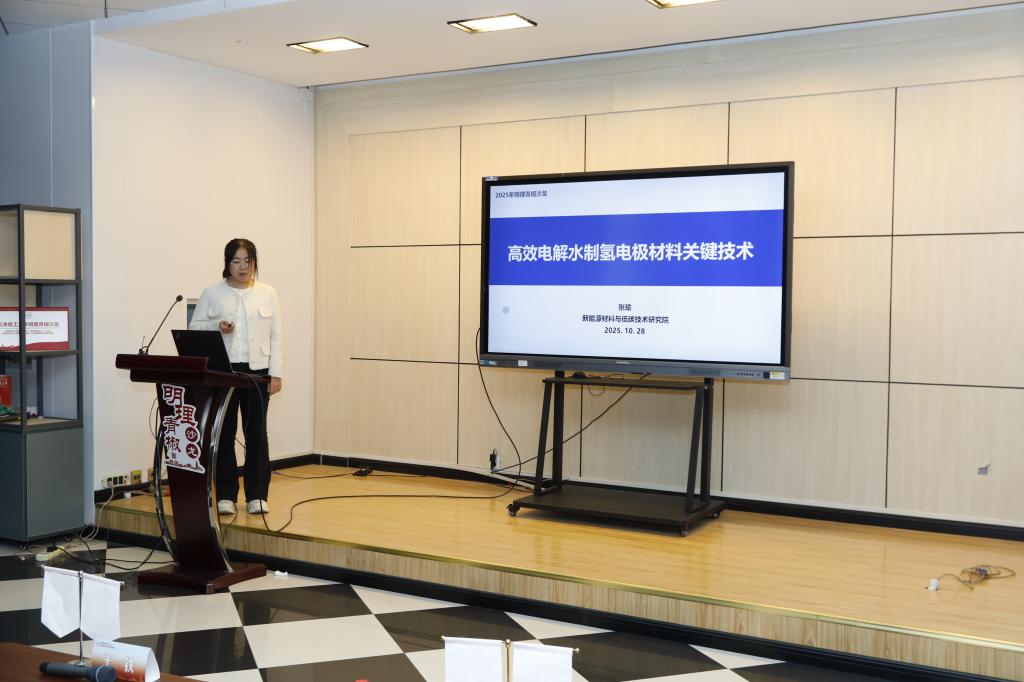 張瑜作題為“高效電解水制氫電極材料關(guān)鍵技術(shù)”的學(xué)術(shù)報告。她聚焦析氫/析氧反應(yīng)特性,深入探討催化劑的可控設(shè)計路徑,系統(tǒng)揭示催化反應(yīng)機(jī)理與材料動態(tài)演變過程,介紹了這一前沿研究成果在質(zhì)子交換膜、陰離子交換膜水電解槽中的實際應(yīng)用。該研究為高效制氫技術(shù)發(fā)展提供了新思路。