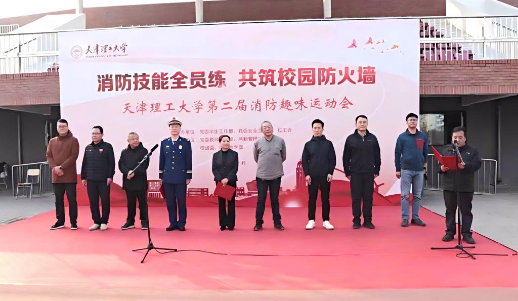 許瑞在致辭中向長期關心、支持我校消防安全工作的西青區消防救援支隊表示感謝,向為消防工作付出辛勤努力的全體師生員工致以誠摯問候。她指出,學校黨委始終高度重視消防安全工作,將其視為保障師生生命安全、維護校園和諧穩定的重要基石。近年來,學校通過層層壓實安全責任、完善制度體系、升級消防設施、深化安全教育等系列措施,持續鞏固校園消防安全防線。她希望廣大師生以此次消防趣味運動會和消防宣傳月為契機,將“全民消防、生命至上”的理念內化于心,將“安全用火用電”的要求外化于行,共同筑牢學校“雙一流”建設的安全屏障。