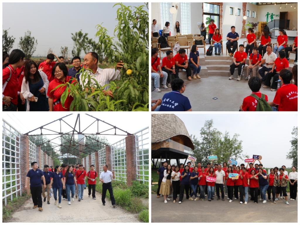在大柳灘村,實踐團漫步于果樹林中,品嘗蒲公英家庭農場自主育種的成熟鮮桃,了解農場先進的科技設備和種植模式,在訪談中體悟農場工作人員扎根土地、刻苦鉆研的工匠精神。通過參觀樹蛙部落理想村,了解其設計理念和運營模式,探索可持續發展的生態典范,就金色麥浪農場的農業生產、宣傳媒介、銷售方式等展開深入交流,充分感受到鄉旅文化的活力。