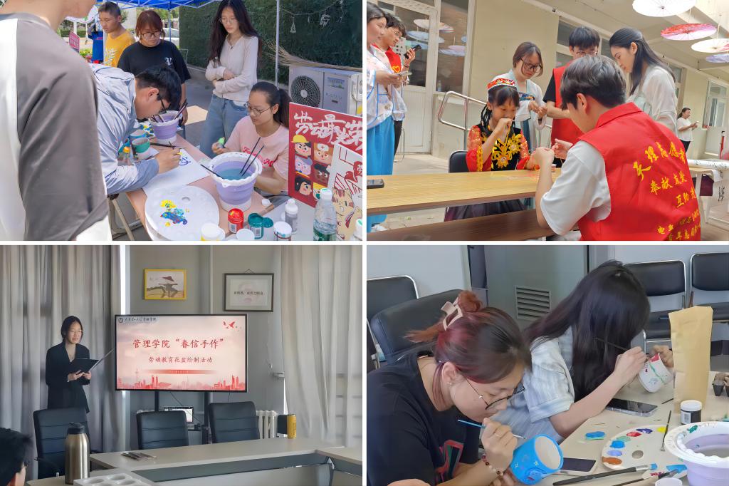 以勞育美,樂享幸福潤心田。管理學院開展“春信手作”花盆繪制,將創意與綠色完美結合。化學化工學院征集“最美勞動者”攝影圖片集,以影片記錄勞動瞬間。語言文化學院開展“勞動讓青春不留白”電子手抄報征集活動。環境科學與安全工程學院利用課余時間見“圾”行事,變廢為寶,將撿拾的花葉,進行巧妙的拼接。計算機科學與工程學院組織“非遺手工與勞動精神”剪紙技藝體驗活動,傳承中華優秀傳統文化。
