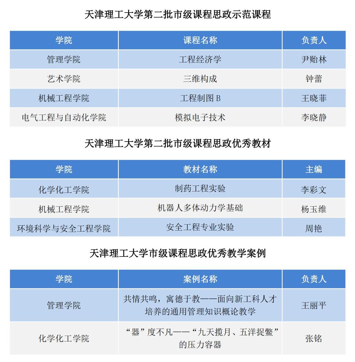 近日,市教委公布第二批天津市級(jí)課程思政示范課程、課程思政優(yōu)秀教材和首批天津市級(jí)課程思政優(yōu)秀案例(本科)名單,我校4門(mén)課程獲批天津市級(jí)課程思政示范課程,3種教材獲批天津市級(jí)課程思政優(yōu)秀教材,2個(gè)教學(xué)案例獲批天津市級(jí)課程思政優(yōu)秀教學(xué)案例。
