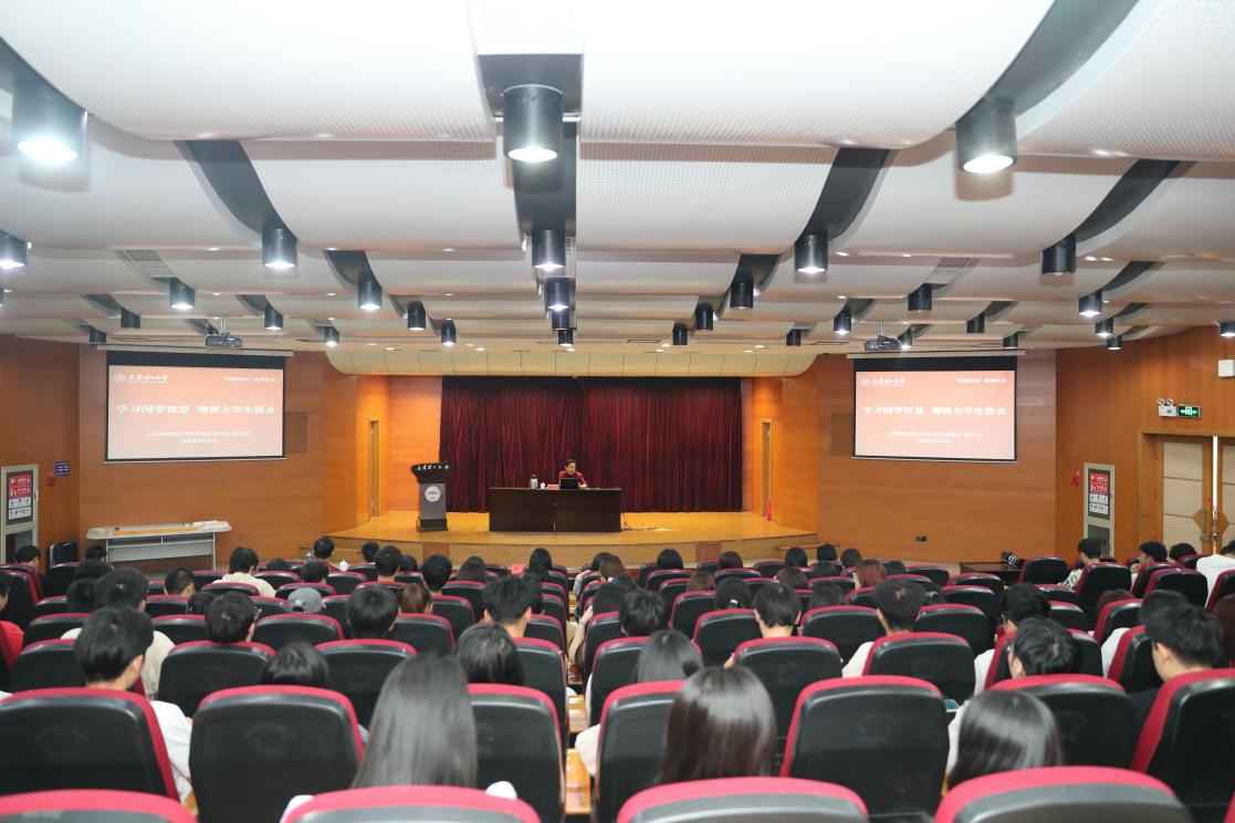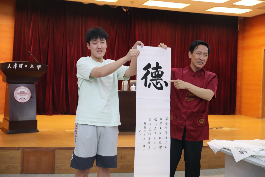 百川老師以問(wèn)題式情景教學(xué)導(dǎo)入,用生動(dòng)的語(yǔ)言、詳實(shí)的案例,圍繞國(guó)文國(guó)粹的內(nèi)容,詳細(xì)闡述了什么是國(guó)學(xué);就《千字文》的形成過(guò)程、行文邏輯、蘊(yùn)含的哲理以及其獨(dú)有的六個(gè)特色深入闡述,并進(jìn)行書(shū)法展示,贈(zèng)送學(xué)生書(shū)法作品,引導(dǎo)廣大學(xué)生深切感受中華優(yōu)秀傳統(tǒng)文化博大精深、認(rèn)識(shí)到國(guó)學(xué)文化的魅力。