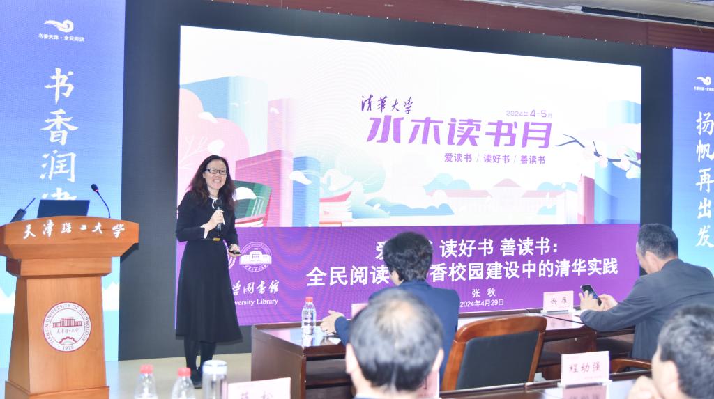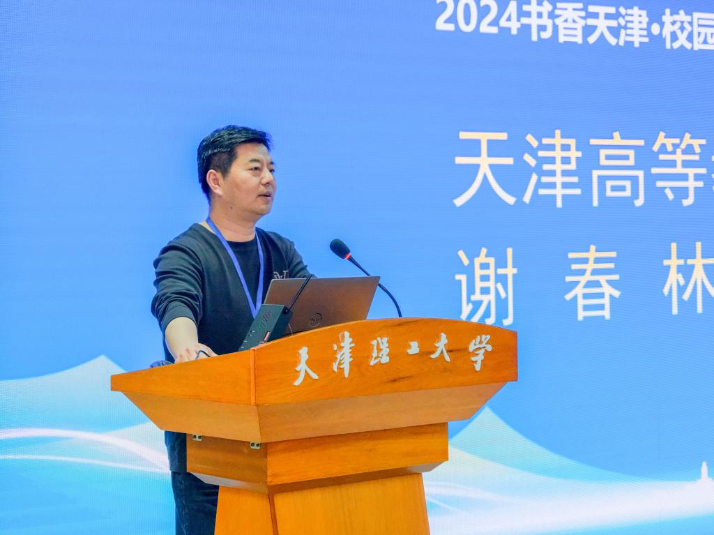 4月29日,我校舉辦“書香潤(rùn)津城 揚(yáng)帆再出發(fā)”2024書香天津·校園大學(xué)生“悅讀之星”評(píng)選活動(dòng)啟動(dòng)會(huì)暨閱讀推廣工作交流會(huì)。天津市高等學(xué)校圖書情報(bào)工作委員會(huì)常務(wù)副秘書長(zhǎng)李廣生、天津高等教育文獻(xiàn)信息中心副主任謝春林,黨委常委、副校長(zhǎng)陳勝勇出席活動(dòng)并致辭,天津市委宣傳部印刷發(fā)行處副處長(zhǎng)田彬出席,來自本市53所本科院校、軍事院校及部分獨(dú)立院校、高職院校的圖書館書記、館長(zhǎng)及教師代表參加會(huì)議。