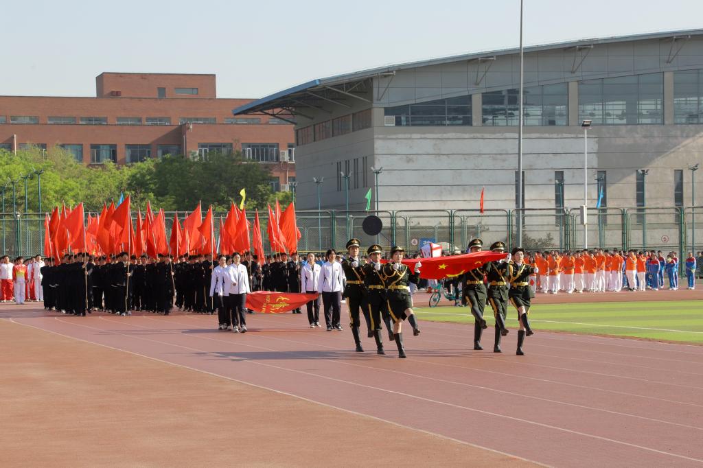 在雄壯嘹亮的樂曲聲中,20個(gè)單位的學(xué)生和教師方隊(duì)身著統(tǒng)一服裝,邁著矯健的步伐,喊著響亮的口號,踏著統(tǒng)一的節(jié)奏,依次通過主席臺,接受檢閱,展現(xiàn)出奮勇爭先、勇奪桂冠的精神風(fēng)貌,贏得了在場師生的陣陣喝彩。