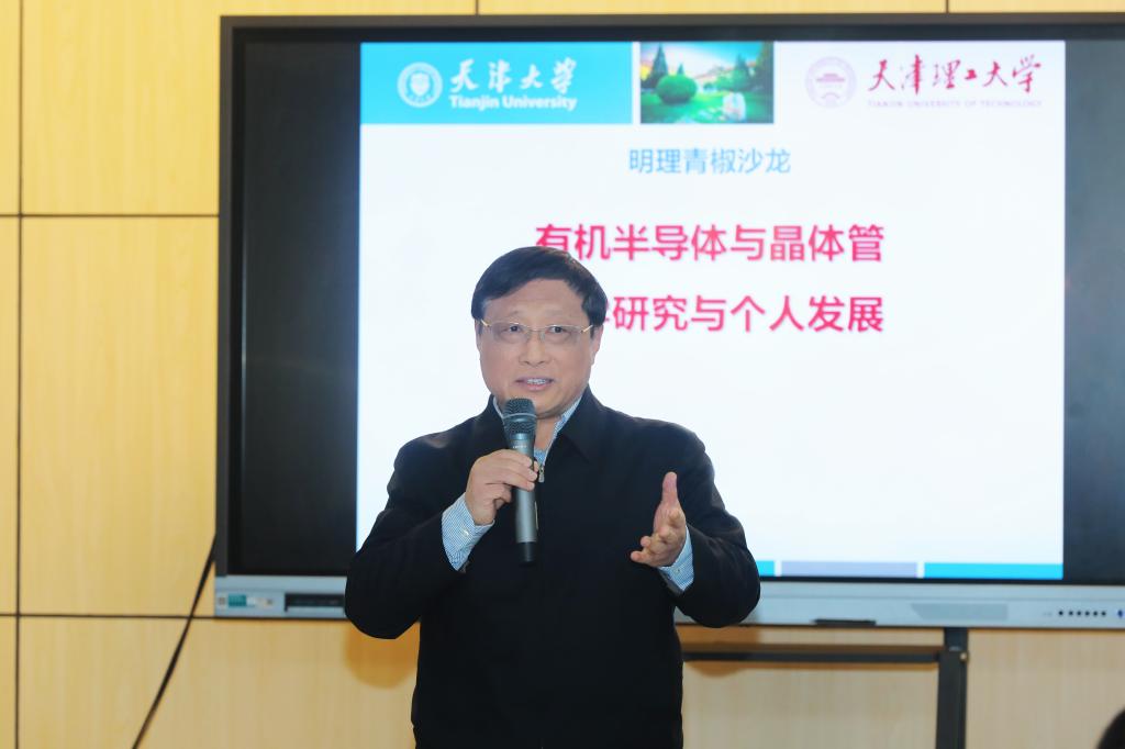 首場活動邀請國家杰青、天津大學李立強教授作題為“有機半導體與晶體管:科學研究與個人成長”的學術報告。報告從個人的科研起點——有機半導體和器件講起,介紹了其圍繞有機半導體材料、工藝和基礎理論,就其穩定性、性能、成本多方面開展的研究工作,該研究基本解決了有機半導體化學屬性穩定性和物理屬性穩定性問題。他還向沙龍學員分享了他的科研感悟,一要堅持學術為本,重視科學研究的創新性、系統性和先進性。二要注重團隊建設,組建有戰斗力、有凝聚力的科研團隊。三要充分依托和利用各級平臺等資源,積極“走出去”“請進來”,強化同行間的學習交流研討,匯聚創新資源,提升科研能力。四要沉下心來,要有耐心和毅力,在正確的方向上堅持不懈,努力突破科研瓶頸,獲得創新成果。學員們結合自身科研工作實際,就報告內容與李立強圍繞有機光伏發展、論文發表、基金申報等內容進行了探討。