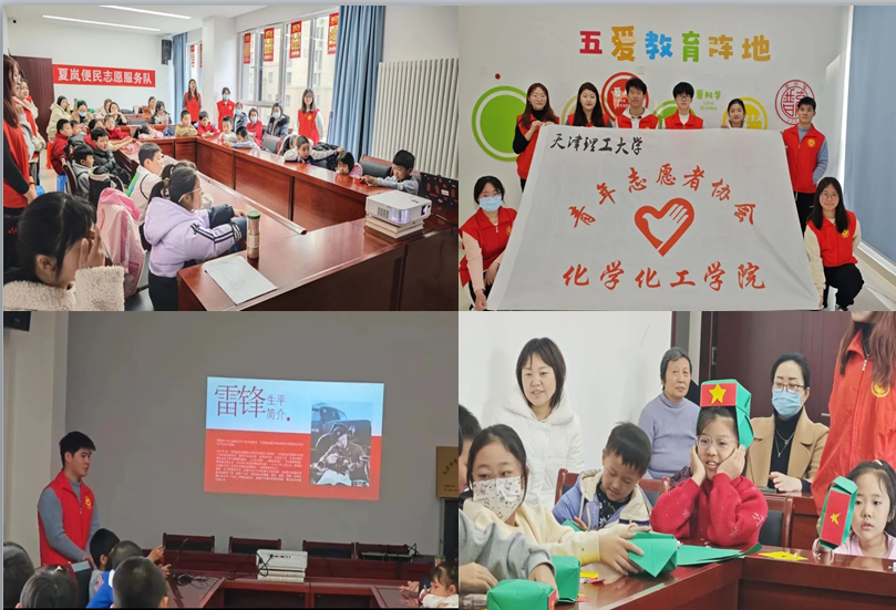 化學化工學院赴北辰區宜興埠夏嵐苑社區、西青區小南河小學,為小朋友們講述《雷鋒日記》,宣講雷鋒精神,教小朋友們制作雷鋒帽,鍛煉動手能力。