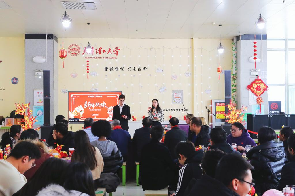 中外學(xué)生帶來精彩節(jié)目,還特別安排了互動抽獎環(huán)節(jié),讓大家在歡快的節(jié)日氛圍里,收獲中外融合和跨文化交流的特別體驗。校領(lǐng)導(dǎo)為中外學(xué)生送上新年禮包,希望大家在新的一年學(xué)有所成,取得新的突破。