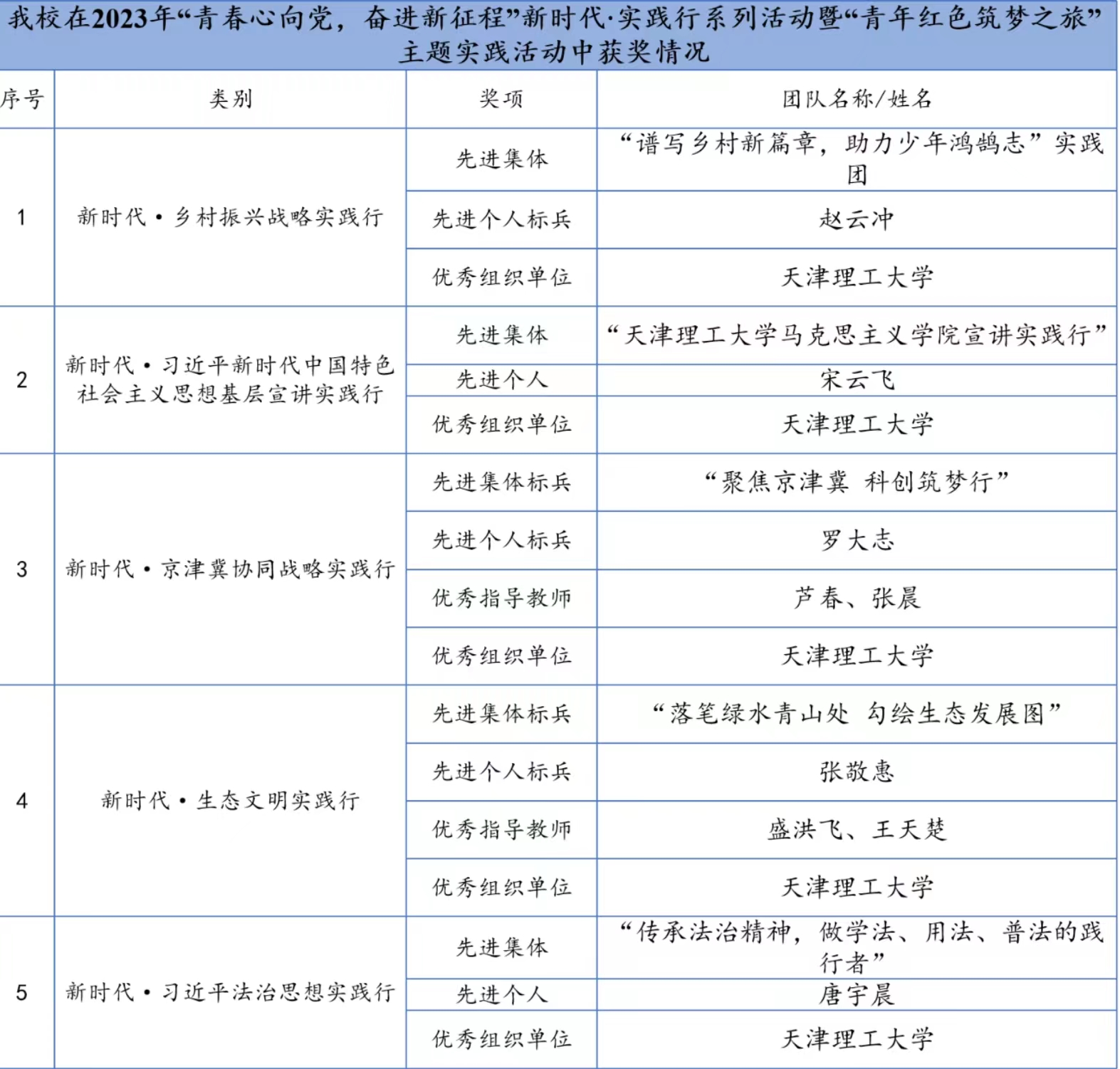 近日,市教育兩委公布了2023年“青春心向黨,奮進新征程”新時代·實踐行系列活動暨“青年紅色筑夢之旅”主題實踐活動評審結果的通知,學校在此次活動評比中喜獲佳績,榮獲先進集體標兵2項、先進集體3項、先進個人標兵3項、先進個人2項、優秀指導教師2項、優秀組織單位5項。