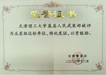 日前,在天津警備區(qū)召開的基層武裝部規(guī)范化達(dá)標(biāo)建設(shè)階段總結(jié)會(huì)上,我校基層人民武裝部獲評五星級達(dá)標(biāo)單位。