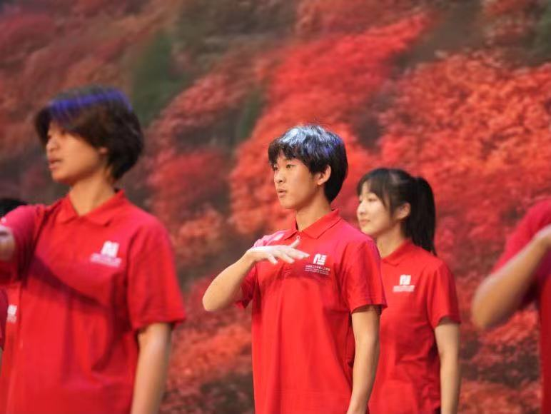 比賽現(xiàn)場,20支參賽隊伍在完成《我們是共產(chǎn)主義接班人》《光榮啊,中國共青團》等指定曲目的手語誦讀的同時,還進行了《讀中國》《新征程》《滿江紅》《沁園春·長沙》等經(jīng)典作品的手語誦讀,用“手語”觸摸歷史脈動、感悟文化魅力,讓國家通用手語的推廣更有感染力、影響力和生命力。我校聾人工學院學生手語團隊誦讀的《沁園春·長沙》,以豐富的手語詞匯、優(yōu)美的韻律節(jié)奏和磅礴的意境氛圍贏得了在場評委和觀眾的一致好評。