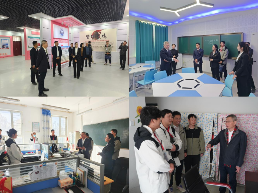 此外,杜長有一行與民豐縣教科局相關負責同志前往駐地,懸掛校徽并為援疆支教主題文化墻揭幕。期間,相關領導為支教師生發放了防寒服等慰問物資,并實地調研走訪駐地宿舍、食堂等,查看了周邊配套設施,詳細了解大家工作和生活環境,從衣食住行等各方面關心、關愛支教師生。