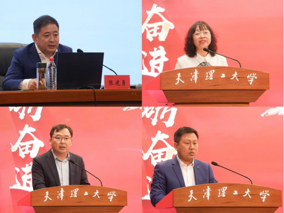 會上,天津市大學軟件學院副院長、我校兼職教授、創新創業學院常務副院長張建勇作了專題報告。馬克思主義學院、教務處、黨委學工部相關負責同志分別圍繞學校思政課程建設、課程思政建設、學生思政教育等方面進行匯報交流。