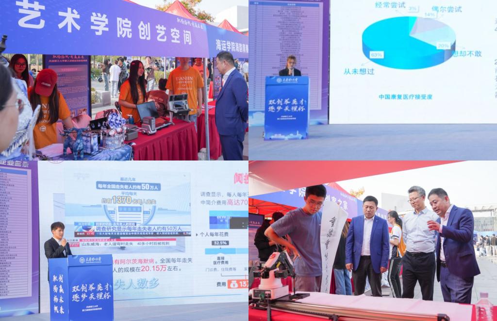 活動現場還設置了科創市集展區。各學院眾創空間展示了學生團隊的最新成果,包含各類創新創業大賽獲獎項目以及互動性強、科技含量高的作品,吸引大量師生駐足觀看。與會專家對展示項目進行了點評,并就眾創空間建設、項目質量提升等方面進行了專業化指導。在眾創空間入孵項目路演答辯會上,來自各學院的18個創新創業項目團隊參加路演展示,評審嘉賓對路演項目針對性地進行了指導,并提出改進建議,有效提升學生創新創業實踐能力。