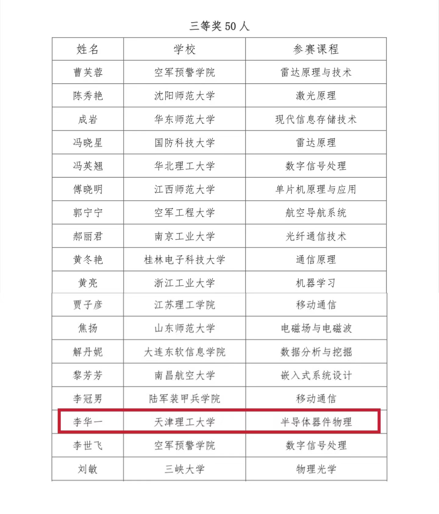 10月21日,全國高等學(xué)校電子信息類專業(yè)青年教師授課競賽組委會發(fā)布《關(guān)于第七屆全國高等學(xué)校電子信息類專業(yè)青年教師授課競賽決賽結(jié)果公示》,我校集成電路科學(xué)與工程學(xué)院教師李華一榮獲三等獎。