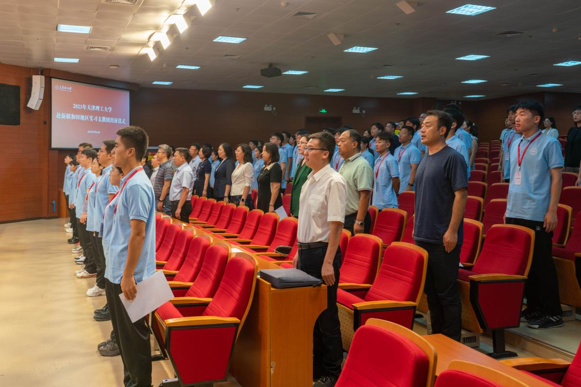 校黨委副書記杜長有宣讀了《關于成立2023年天津理工大學赴新疆實習支教團的決定》,本次支教活動是天津市第十一批大學生援疆支教項目,學校從13個學院選派了50名同學、4名教師到和田地區民豐縣從事小學和初中學段實習支教工作。