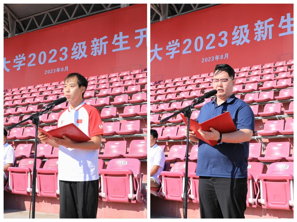 校友代表、成都第31屆世界大學生夏季運動會2枚金牌獲得者、2022屆管理學院本科畢業(yè)生金哲典發(fā)言,分享了自己在成都大運會賽場上努力拼搏、實現(xiàn)夢想的過程,鼓勵新生們勇于追夢,樹立遠大人生理想,擦亮青春鮮明底色,練就過硬專業(yè)本領(lǐng)。校友代表、2021屆電氣工程與自動化學院碩士畢業(yè)生曹晟發(fā)言,回顧了自己在校期間努力學習,投身科研實踐的歷程,鼓勵新生們保持求知熱情,勇于創(chuàng)新創(chuàng)造,重德重能做人,求實求新干事。