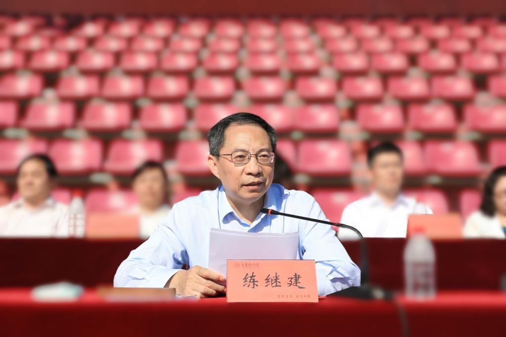 校黨委副書記、校長練繼建在開學典禮上向全體新生作形勢政策教育開學第一課。他指出,當今世界,百年變局加速演進,新一輪科技革命和產(chǎn)業(yè)變革深入發(fā)展,知識迭代、技術(shù)更新不斷加快。他強調(diào),廣大青年學子要堅定理想信念,擦亮報國底色,把青春融入服務國家、造福人民的主旋律,真正把論文寫在祖國大地上;練就過硬本領(lǐng),永葆奮斗本色,在院士專家、教學名師的課堂上領(lǐng)悟知識樂趣,加入科研項目團隊尋找學術(shù)創(chuàng)新、技術(shù)創(chuàng)造樂趣,在特色平臺上陶冶情操全面發(fā)展;勇做創(chuàng)新先鋒,彰顯青年特色,要及時關(guān)注行業(yè)前沿動態(tài),依托創(chuàng)新創(chuàng)業(yè)學院等平臺,跨學科、跨專業(yè)學習知識技能,爭當創(chuàng)新、創(chuàng)業(yè)、創(chuàng)造的排頭兵。廣大天理學子要大力弘揚天理精神,傳承天理品格,用實際行動踐行“請黨放心,強國有我”的青春誓言,勇?lián)鷱妵姑瑫鴮懱炖砣说那啻喝A章。