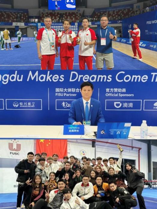 學校成功連任大學生體育協會民族傳統體育分會主席單位,積極推動武術運動項目的普及與發展,以賽事、培訓、文化交流為抓手,充分發揮市少數民族傳統體育武術項目訓練基地的輻射作用。高水平武術隊參加2022年、2023年全國大學生武術套路錦標賽,奪得30枚金牌,參加市第九屆少數民族傳統體育運動會,奪得1枚金牌。在近日舉辦的成都第31屆世界大學生夏季運動會上,中國武術代表隊由校黨委副書記、中國大學生體育協會民族傳統體育分會主席杜長有擔任領隊,由體育部教師唐玄戈擔任武術套路教練,隊員金哲典1人奪得男子長拳、男子刀術2個項目金牌,成為“雙冠王”。