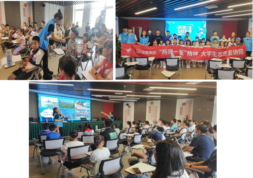 為弘揚科學精神,助力科教興市,學院“兩彈一星”精神宣講團來到河東區魯山道街道為30余名小學生開展宣講。宣講團成員向小朋友們展示了“華龍一號”核電站樂高模型,并結合自身學科背景,并為小朋友們講解核裂變、核電站的工作原理及建造過程,把“兩彈一星”精神所包含的愛國情、強國夢播撒在小小少年心中,引領學生厚植家國情懷,立志扎根津沽大地,用實際行動服務天津發展,為建設美麗天津貢獻力量。