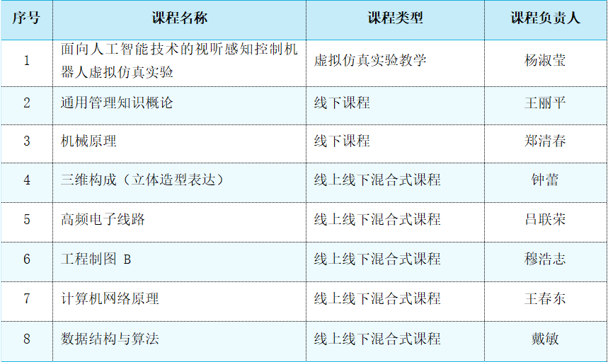 近日,教育部印發《關于公布第二批國家級一流本科課程認定結果的通知》(教高函〔2023〕7號),正式公布了第二批國家級一流本科課程認定結果,學校共有8門課程獲得認定。其中《面向人工智能技術的視聽感知控制機器人虛擬仿真實驗》1門課程入選虛擬仿真實驗教學一流課程,《通用管理知識概論》《機械原理》2門課程入選線下一流課程,《三維構成(立體造型表達)》《高頻電子線路》《工程制圖B》《計算機網絡原理》《數據結構與算法》5門課程入選線上線下混合式一流課程。