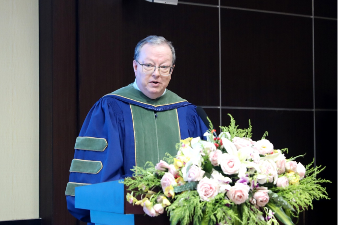 Brett Fairbairn高度贊揚兩校20余年卓有成效的長期合作,并寄語畢業生要勇于實踐、敢于奉獻,要銘記此刻的成功,以自己的勇氣、力量面對未來的挑戰和逆境。