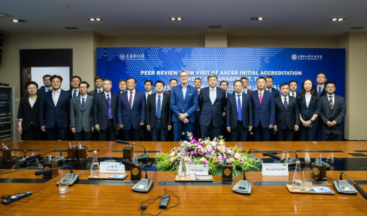 國內外專家評審團一行3人于日前蒞臨管理學院,開展國際精英商學院(AACSB)認證現場訪視。校領導劉東志、練繼建、杜長有、張繼東、陳勝勇、葉寧出席訪視環節,部分職能處室負責同志參加。