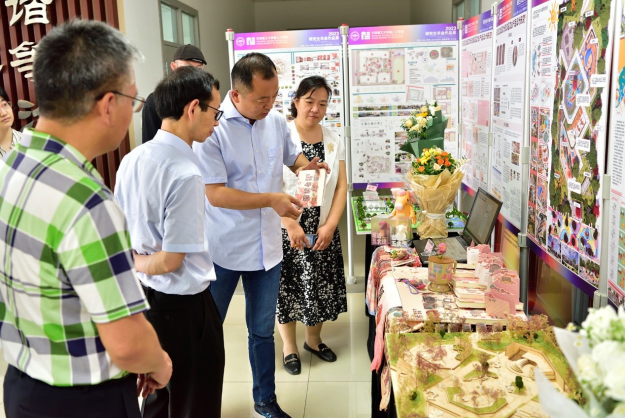 會前領導和嘉賓參觀了首屆研究生畢業作品展。
