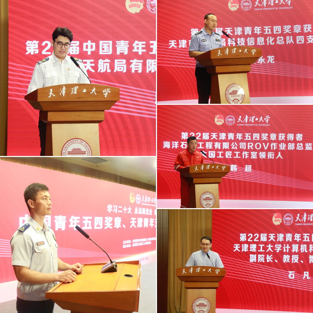 周信宇對“大國重器”天鯤號進行了詳細介紹,用天鯤號背后的感人故事詮釋了“奮斗是青春最靚麗的底色,行動是青年最有效的磨礪”。“做讓黨放心、讓人民滿意的鋼鐵衛(wèi)士”張夢杰分享了天津經(jīng)濟技術(shù)開發(fā)區(qū)八大街消防救援站的優(yōu)良傳統(tǒng)及精神傳承,用行動譜寫了“對黨忠誠、紀律嚴明、赴湯蹈火、竭誠為民”的壯麗凱歌。“對黨忠誠、服務人民、執(zhí)法公正、紀律嚴明”的市公安局科技信息化總隊四支隊支隊長高永龍分享了他不斷磨礪技能,勇攀技術(shù)高峰,勇做科技強警“排頭兵”的事跡,用實際行動詮釋了科信民警的忠誠與擔當。“深海宇航員”海洋石油工程有限公司ROV作業(yè)部總監(jiān)、大國工匠工作室領(lǐng)銜人韓超講述了他帶領(lǐng)團隊聚焦引領(lǐng)性、基礎性難題攻關(guān),將中國人的腳印穩(wěn)穩(wěn)扎在大海深處,助力建設海洋強國的奮進故事。計算機科學與工程學院副院長石凡分享了他從航天青年到高校教師,從勇攀科技前沿高峰到深耕科教育人沃土經(jīng)歷的變化與感悟。