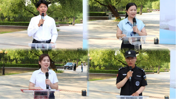 保安隊(duì)員代表、天津市??偙0卜?wù)有限公司員工陳國濤表示,要帶頭說文明話、辦文明事、做文明人,維護(hù)校園安全,規(guī)范文明執(zhí)勤,勇于向不文明行為說“不”。他還倡議師生踐行《天津市文明行為促進(jìn)條例》,安全規(guī)范出行,共建文明校園。