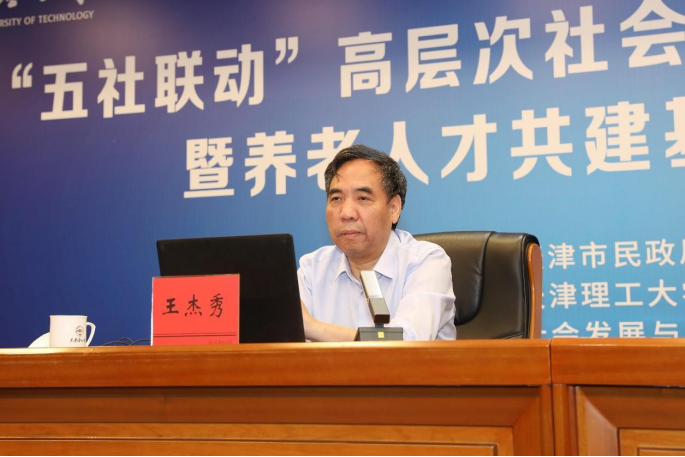 社會發展學院負責同志介紹了我市“五社聯動”高層次社會工作人才培養計劃及養老人才共建基地情況。出席活動的領導共同為“天津市養老人才共建基地”揭牌。