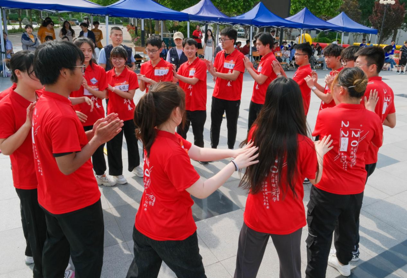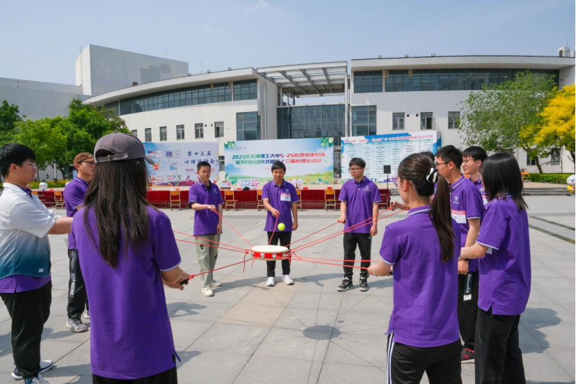 啟動(dòng)儀式后,天津大學(xué)吳鳳偉老師帶領(lǐng)各學(xué)院學(xué)生代表開展心理健康運(yùn)動(dòng)會(huì)項(xiàng)目--百人同心鼓,形式新穎、內(nèi)容精彩。“快樂同心鼓”“挑戰(zhàn)NO.1”“進(jìn)擊毛毛蟲”“勇士挑戰(zhàn)賽”等比賽項(xiàng)目相繼開展,釋放了同學(xué)們的心理壓力,培養(yǎng)了團(tuán)結(jié)協(xié)作、堅(jiān)韌不拔的積極心理品質(zhì)。