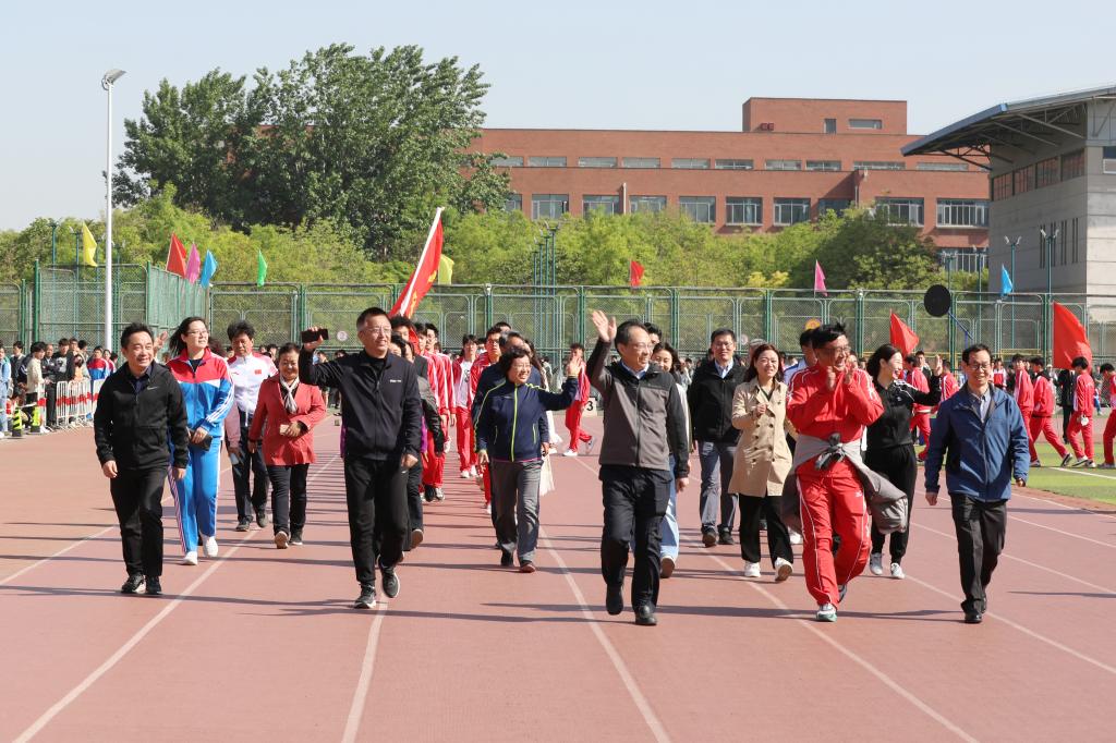 隨后,校領導走上跑道,帶領學生方隊與教師方隊進行健身走。