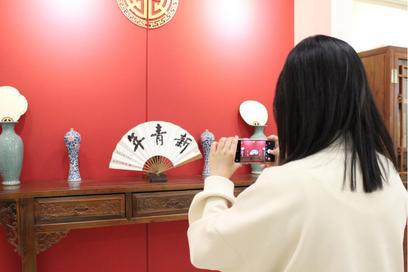 活動由扇面藝術講解、學生作品點評及互動交流三個環節組成。相關教師向大家介紹了文人扇的構成、種類及文化內蘊。結合現場作品的創作理念、表現形式和審美取向,闡釋了詩、書、畫、印的內在關聯和人文情懷。