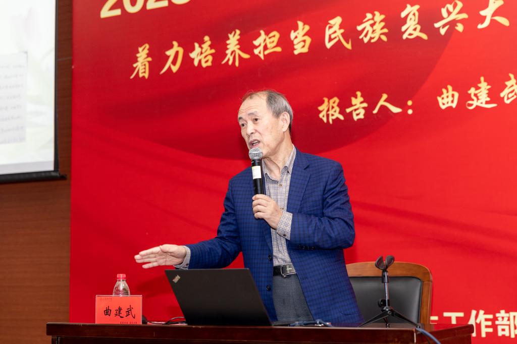 “時(shí)代楷模”、全國(guó)道德模范、全國(guó)“最美奮斗者”、全國(guó)高校輔導(dǎo)員年度人物、全國(guó)優(yōu)秀教師,大連海事大學(xué)教授曲建武于日前走進(jìn)我校,以“著力培養(yǎng)擔(dān)當(dāng)民族復(fù)興大任的時(shí)代新人”為主題,為全校輔導(dǎo)員上了一堂生動(dòng)的思政示范課。報(bào)告會(huì)由黨委學(xué)工部負(fù)責(zé)同志主持。