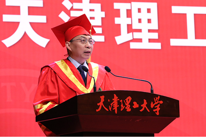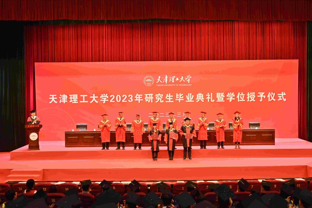 莊嚴的畢業(yè)典禮在雄壯的國歌聲中拉開帷幕。黨委常委、副校長張繼東宣讀了《天津理工大學關于授予李嘯等5名同學博士學位、賴艷芳等781名同學碩士學位的決定》。