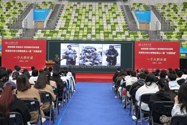 3月18日,在習近平總書記發表學校思想政治理論課教師座談會重要講話4周年之際,由市委教育工委、市教委舉辦,天津市大中小學師生同上一堂“大思政課”——“自信自強、團結奮斗,走好新時代長征路”,在我校體育館舉行。市委教育工委專職副書記孫志良、校黨委書記劉東志出席,活動由黨委常委、副校長張繼東主持。