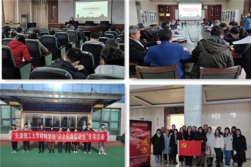 抓黨建思政,促思想統一。學院召開全體教師大會,深入學習貫徹黨的二十大精神,對新學期黨建育人、思政教育、教育科研、校園安全等方面工作進行了詳細部署,精心安排春季學期學生開學相關工作,引導全體教師努力提升學院人才培養質量、科技創新水平和服務社會能力。學院邀請西青分局學苑派出所相關同志,為學生舉辦新學期首場安全教育講座,同時組織全體教師赴天津大禮堂觀看地震科普教育宣傳題材電影《我要去遠方》,增強防災減災意識。為落實教育部工作要求,搶抓春季開學后促就業工作關鍵期,學院召開“搶抓春招關鍵期 全力攻堅促就業”2023屆畢業生就業工作推動會,旨在凝聚共識、齊抓共管,形成“三全就業”工作合力。開學以來,相繼組織師生赴天津鴻德汽車玻璃、北京環衛集團環衛裝備(樂亭)有限公司、東日新能源材料有限公司、旭日化工有限公司、河鋼集團唐山鋼鐵有限公司等十余家企業開展訪企拓崗工作,并與河北省唐山市樂亭縣經濟開發區簽訂戰略合作協議。