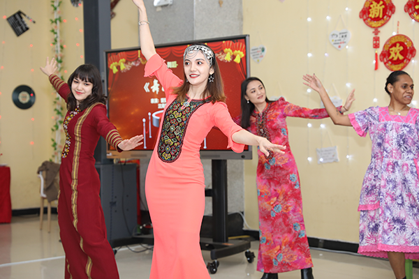 留學(xué)生們精心準(zhǔn)備了舞蹈串燒、中文歌曲演唱、書法展示等精彩表演,大家在一片歡聲笑語中共同期待新的一年收獲更多的美好。