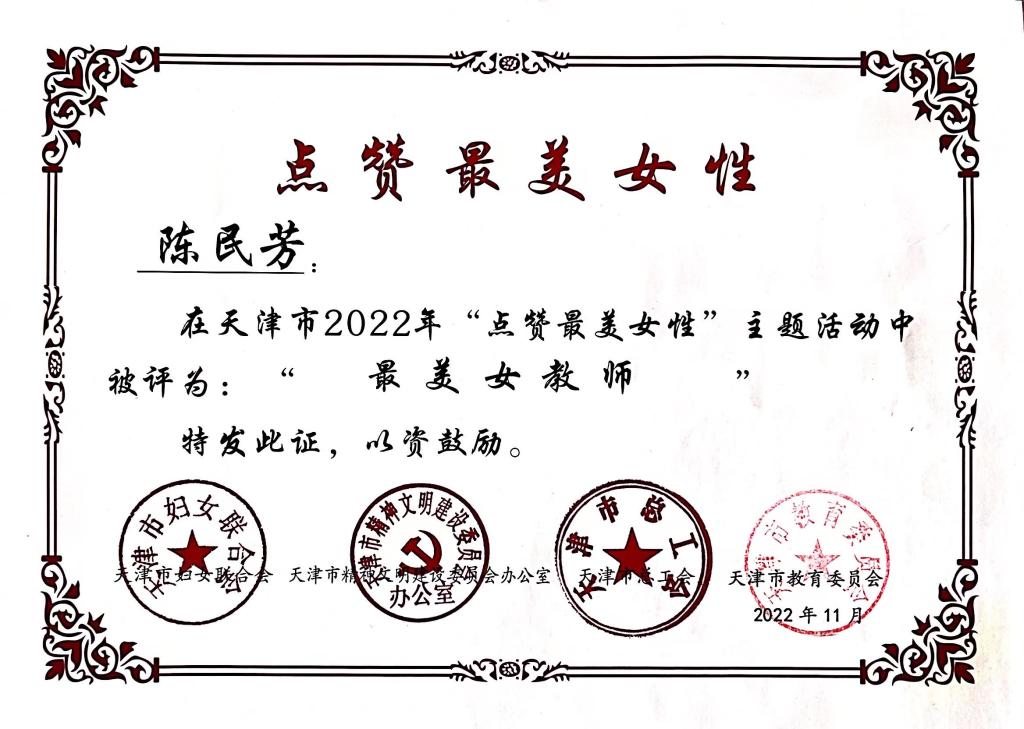 日前,由市婦聯、市文明辦、市總工會、市教委聯合開展的“天津市最美女教師”活動推選結果揭曉,我校材料科學與工程學院教授陳民芳榮獲“天津市最美女教師”榮譽稱號。