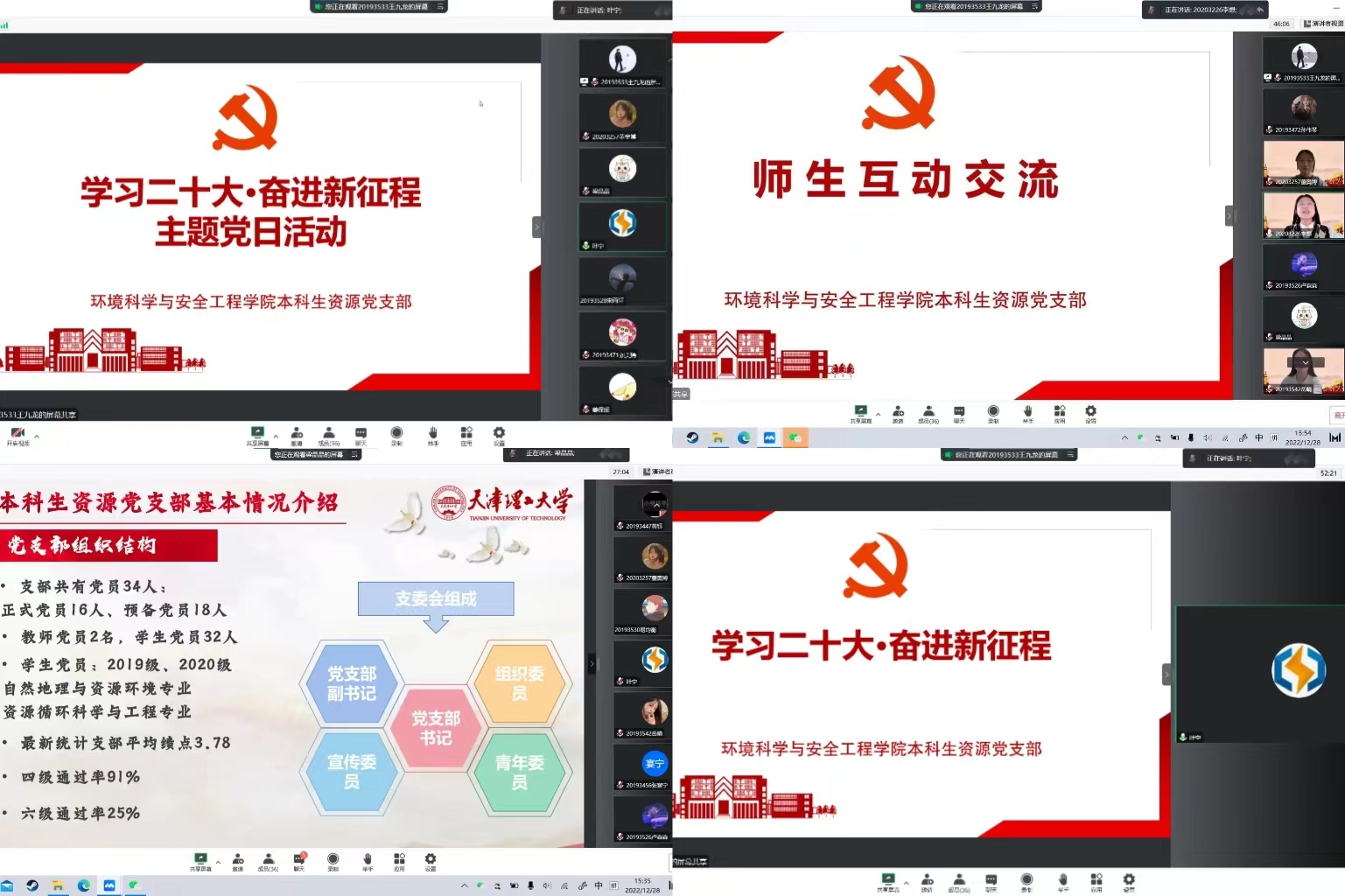 為持續深入學習貫徹黨的二十大精神,12月28日環境科學與安全工程學院本科生資源黨支部開展“學習二十大·奮進新征程”主題黨日活動。校黨委常委,副校長葉寧出席,學院相關領導老師、黨支部全體黨員參加。