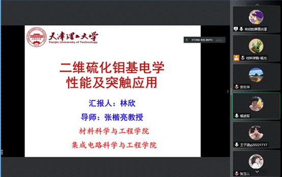 來自功能晶體研究院、集成電路科學與工程學院、新能源材料與低碳技術研究院的博士研究生分別以“堿土金屬硫屬紅外非線性光學晶體結構設計、合成及性能表征”“二維硫化鉬基電學性能優(yōu)化及突觸應用探索”“功能配合物的制備及其光催化CO2還原性能研究”為主題作學術報告,講解中遠紅外非線性光學晶體領域中從晶體結構設計到材料間的構效關系,二維硫化鉬基光電性能研究以及突觸應用探索,功能配合物用于構建高效、廉價、穩(wěn)定的光催化CO2還原體系等科學問題,學校多位教授對博士研究生的學術報告進行問題探討和精彩點評。