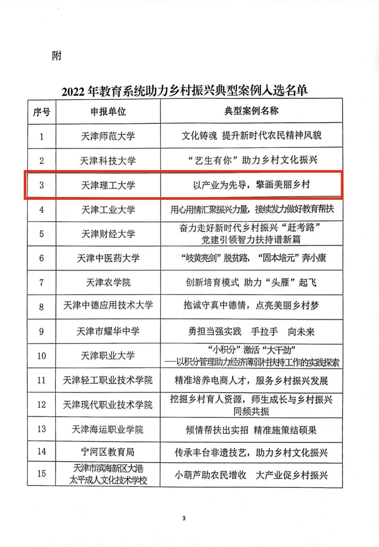 日前,天津市教育委員會公布2022年教育系統助力鄉村振興典型案例,我校派駐薊州區下窩頭鎮扶持經濟薄弱村駐村工作隊申報的《以產業為先導,擎畫美麗鄉村》入選典型案例名單。