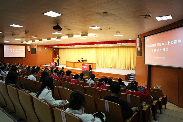 按照校黨委學(xué)習(xí)宣傳貫徹黨的二十大精神工作部署和專題讀書班工作安排,為進(jìn)一步深入學(xué)習(xí)宣傳貫徹黨的二十大精神,11月28日,學(xué)校邀請市委黨校副校長徐中為師生作題為“高舉旗幟的政治宣言 偉大復(fù)興的行動(dòng)綱領(lǐng)——深入學(xué)習(xí)宣傳貫徹黨的二十大精神”的專題輔導(dǎo)報(bào)告。校院兩級黨委理論學(xué)習(xí)中心組成員、機(jī)關(guān)處室全體處級干部、馬克思主義學(xué)院思政課教師、基層黨支部書記、離退休老同志、民主黨派和統(tǒng)戰(zhàn)團(tuán)體代表、師生宣講團(tuán)成員、學(xué)生骨干以及黨建結(jié)對共建單位天津理工大學(xué)中環(huán)信息學(xué)院師生代表等450余人通過線上線下相結(jié)合的方式參加學(xué)習(xí)。校黨委常委、副校長張繼東主持報(bào)告會。