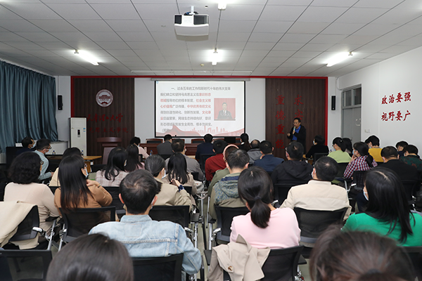 校黨委書記劉東志在總結中強調,習近平總書記所作的報告,是黨團結帶領全國各族人民奪取中國特色社會主義新勝利的政治宣言和行動綱領,是馬克思主義的綱領性文獻。馬克思主義學院作為“第一學院”,要始終堅持“馬院姓馬,在馬言馬”的鮮明導向和辦學原則,要在學習宣傳、研究闡釋、貫徹落實黨的二十大精神中走在前、做表率,一是學習好黨的二十大精神,思政課教師要先學一步,學深一層,深刻領悟黨的二十大提出的新思想新論斷、作出的新部署新要求。二是講述好黨的二十大精神,將黨的二十大精神作為學校思政課重要內容,以“小切口”講清“大道理”,用講故事的形式和學生聽得懂的話語體系,全方位、全覆蓋向學生宣傳宣講黨的二十大精神。三是研究好黨的二十大精神,思政課教師要加強對黨的二十大精神的研究闡釋,找準理論與實踐的結合點,深入解讀黨的二十大精神。四是宣傳好黨的二十大精神,充分發揮馬克思主義學院的專業優勢,組建黨的二十大精神宣講團,響應市委號召,走出學校,走進田間地頭、工礦企業宣講黨的二十大精神,講好中國故事、天津故事、天理故事。