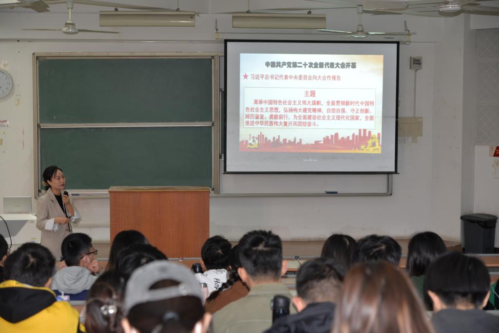 馬克思主義學院思政課教師熱切關注黨的二十大勝利召開,及時收聽收看開幕會,認真學習黨的最新理論成果,第一時間通過思政課主渠道將黨的二十大報告內容傳遞給學生,用習近平新時代中國特色社會主義思想鑄魂育人。