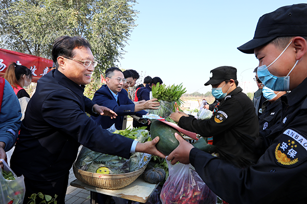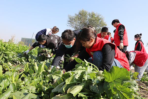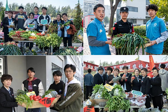 校領(lǐng)導(dǎo)與同學(xué)們走進(jìn)明理農(nóng)場沉浸在豐收的喜悅與自豪之中。大家將勞動成果分享給為學(xué)校默默付出的工勤與安保人員,感謝他們在疫情期間舍小家顧大家,堅(jiān)守在校園服務(wù)保障的崗位上。