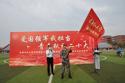 啟動儀式上,校黨委書記劉東志為“崇英”國防預儲班授旗。